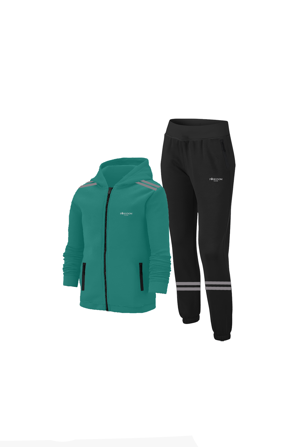 Kız Çocuk Su Yeşili Günlük Sporcu Eşofman Takımı 104cm-176cm Şeritli Omuz (STM00014)